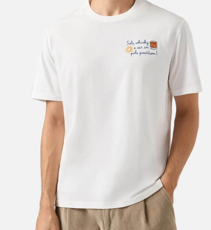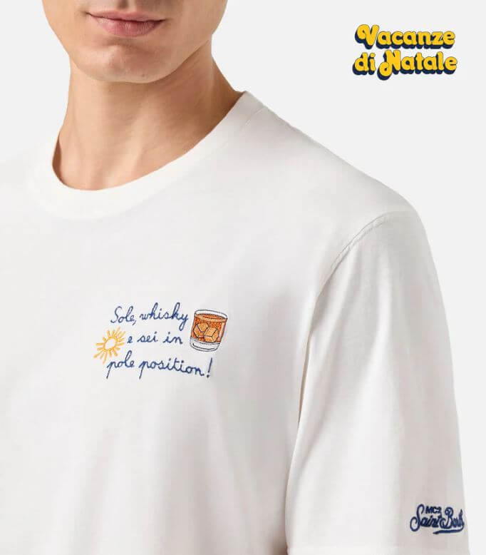 T-shirt uomo MC2 Saint Barth Arnott Warm con ricamo ” Sole, Whisky e sei in pole position!”