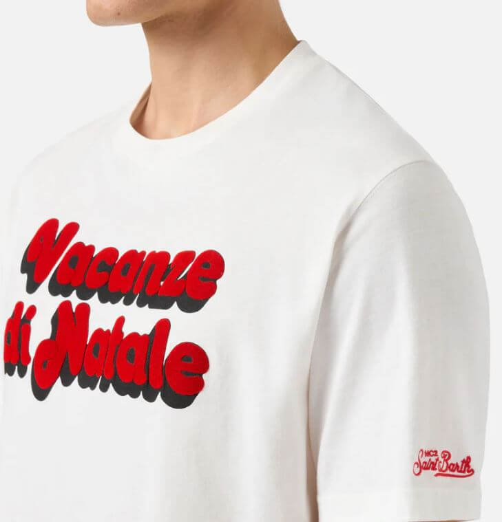 T-shirt uomo MC2 Saint Barth Arnott Warm con stampa flock “VACANZE di NATALE”