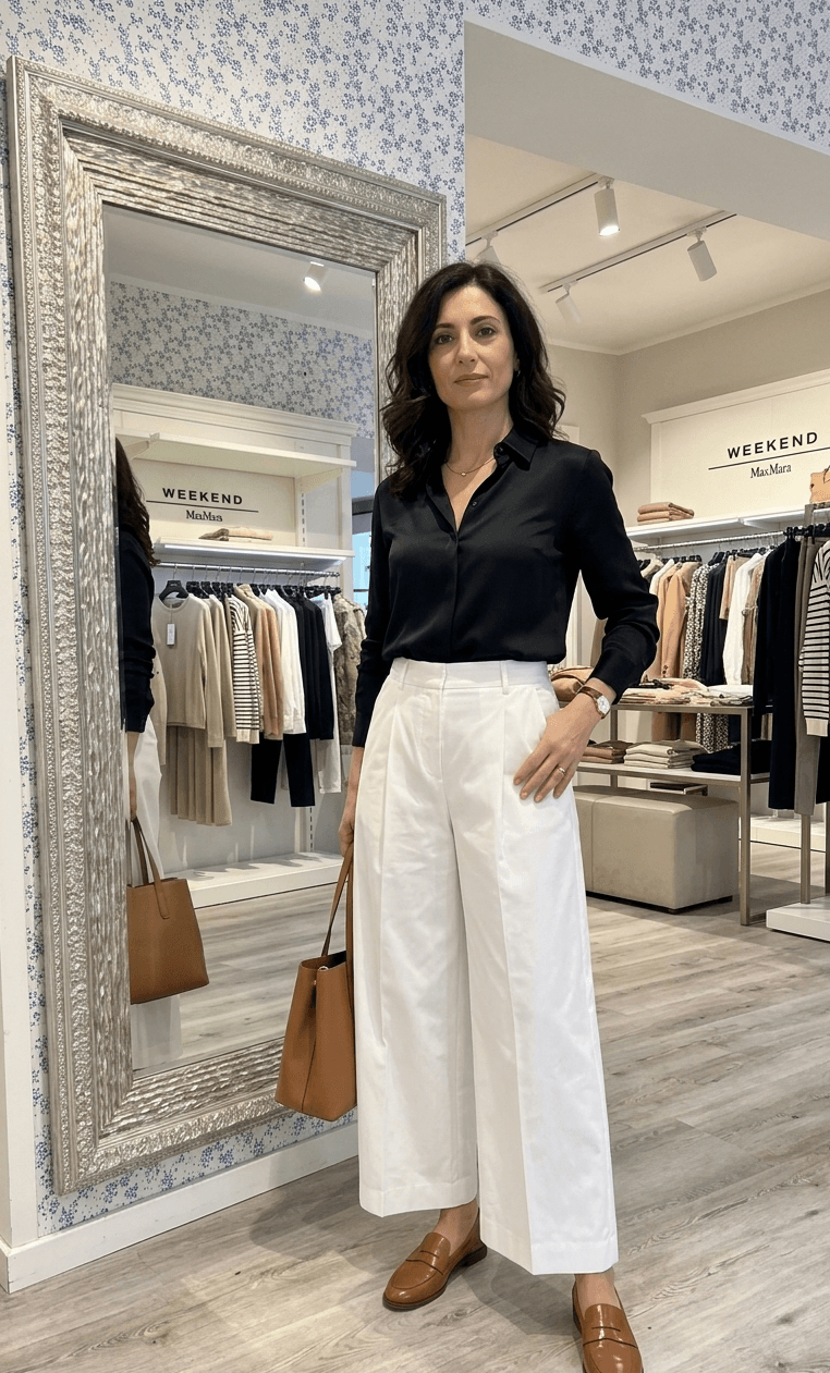 Pantalone wide leg con taglio cropped alla caviglia e pinces in vita sul davanti.