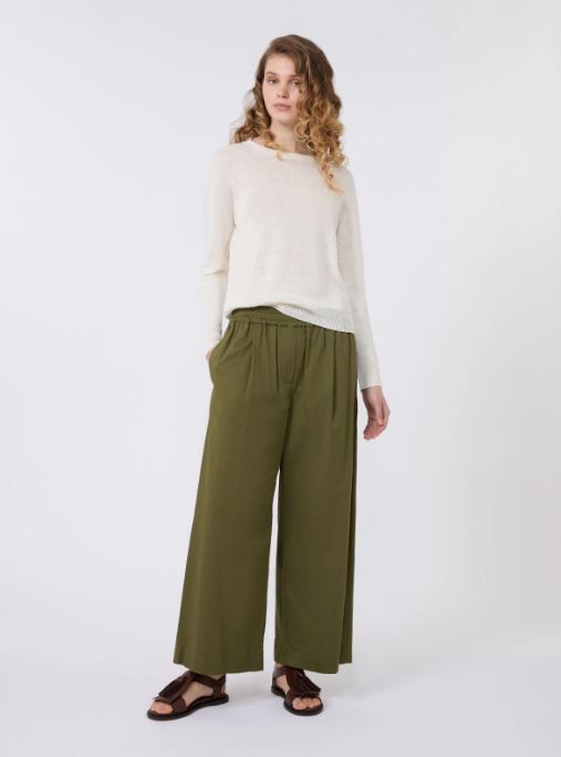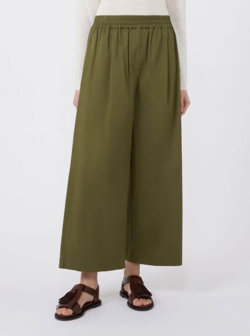 Pantalone cropped alla caviglia, caratterizzato da una silhouette con gamba larga.