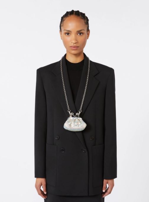 Borsa in raso interamente ricoperta da pavé di strass termosaldati